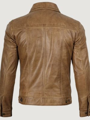 Men’s Real Leather Camel Brown Trucker Jacket